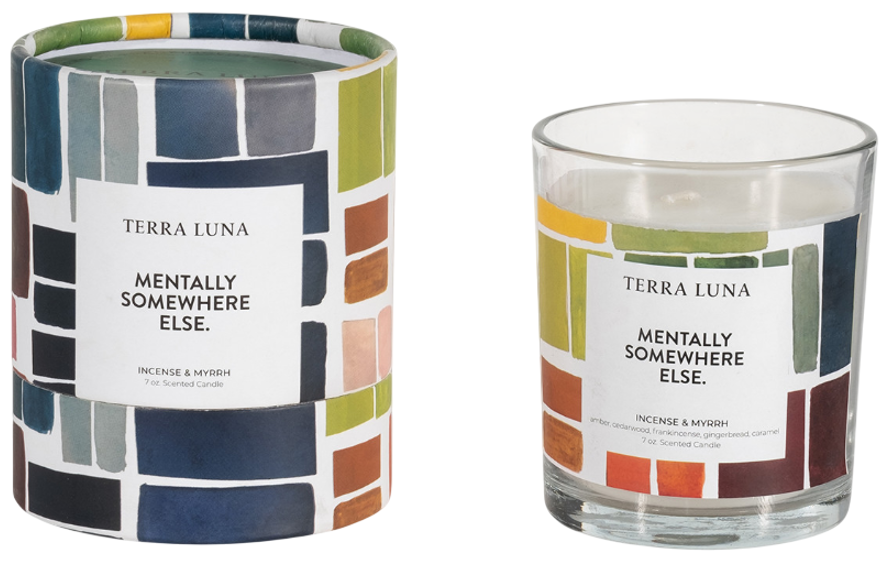 A playful boxed candle featuring the witty phrase “Mentally Somewhere Else” on crisp white glass. Infused with a warm incense-and-myrrh scent, it combines functional fragrance and decorative flair. Perfect for brightening bathrooms, desks, or living spaces with humor and aromatic styleRead More