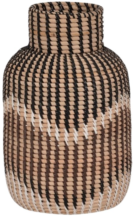 This 13-inch decorative vase is crafted from rattan and features a black and brown woven design. Its natural texture and multi-toned finish bring a warm, earthy accent to any room.Read More