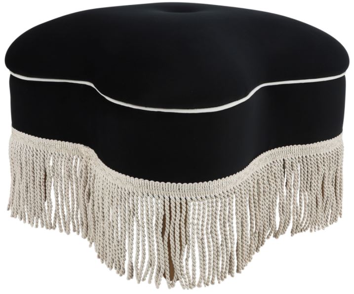 Make a bold statement by incorporating this stunning club ottoman to your home. It features a black fabric finish with decorative fringes.Read More
