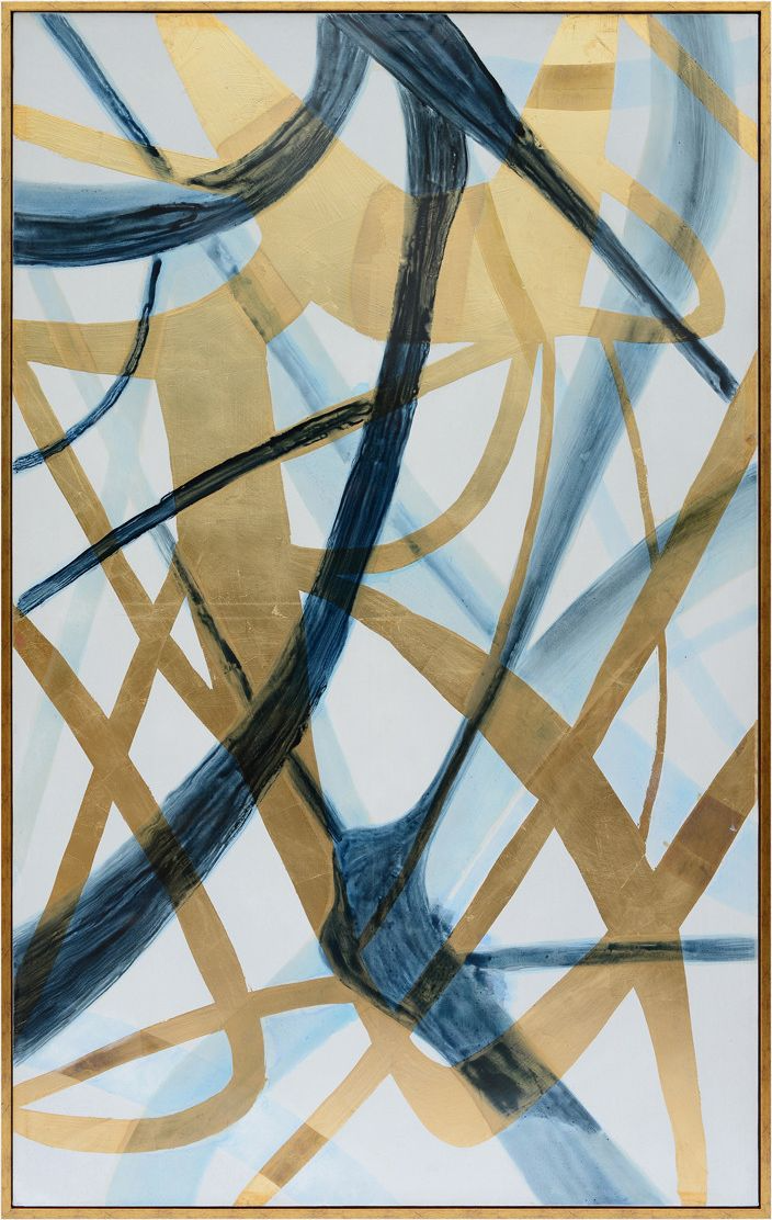 Large, swooping lines and gold accents make this abstract work visually appealing and striking. This piece would make a wonderful addition to any area of your home. For the art aficionado or the homeowner looking for a pop of color to brighten a room.Read More