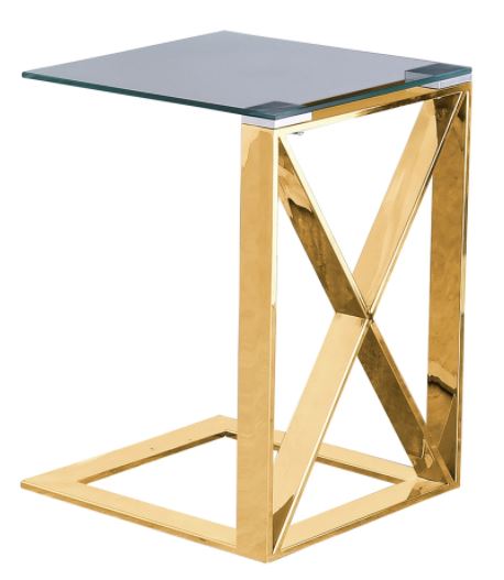 Make a bold statement by incorporating this stunning side table to your home. It features a glass top in a gold stainless steel X frame.Read More