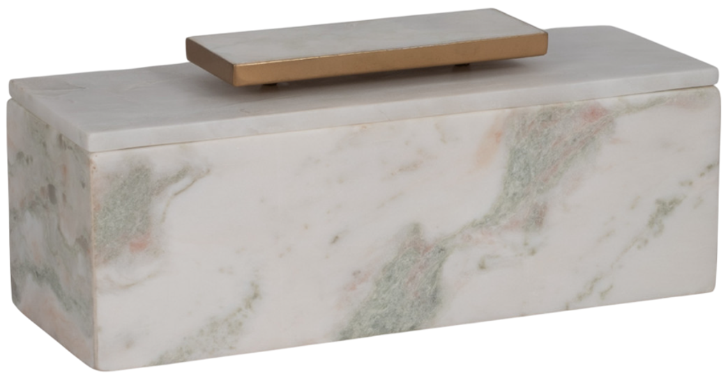 The Sagebrook Home Salina white marble box is a refined decorative accessory crafted from genuine white marble and accented with metal. Its clean-lined rectangular shape and minimalist design make it a luxurious addition to tabletops, consoles, or shelves—perfect for storing small essentials or displaying as an elegant sculptural accent.Read More