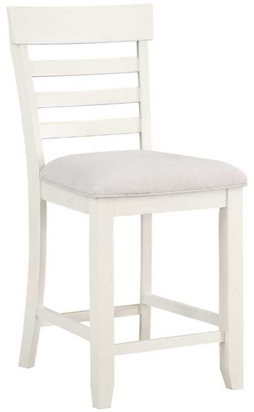 An upholstered Counter Chair that sports a crisp white finish and cream-colored fabric seat for a fresh, comfortable addition to any kitchen or dining area. The horizontal slatback design features a shaped top rail for a relaxed transitional appeal for modern, farmhouse or coastal environments.Read More