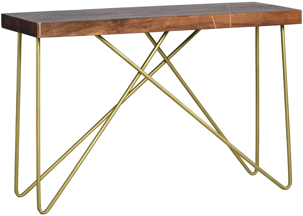 This sofa table combines a warm pine finish with a striking brass base, offering both rustic charm and modern elegance. Its compact design makes it versatile for living rooms or bedrooms, while the sturdy construction ensures lasting style and functionality.Read More