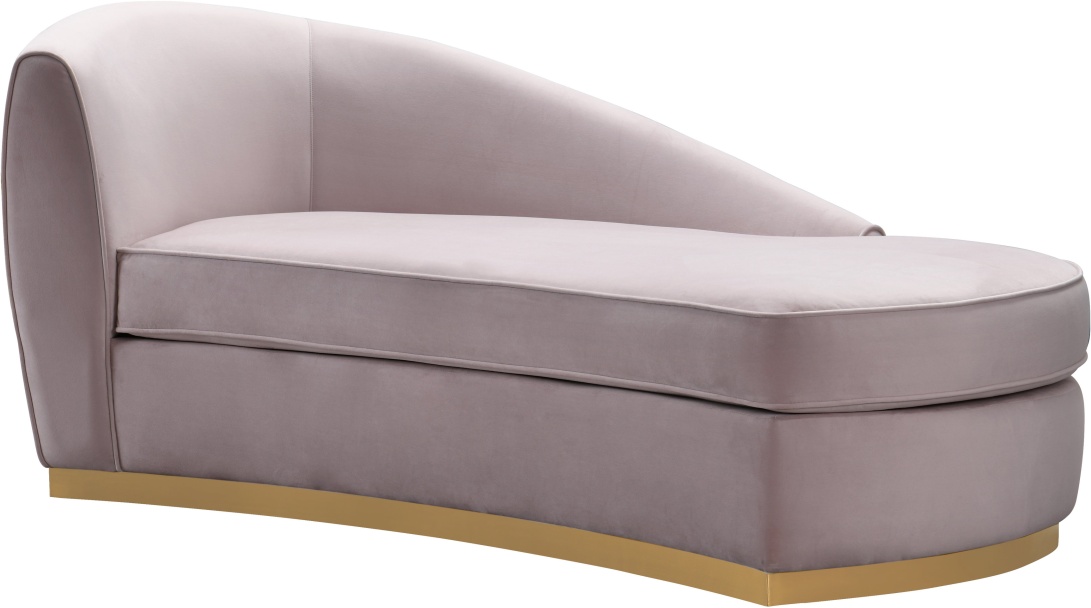 Featuring subtle curves and elegant style, the Adele chaise flawlessly disappears into itself allowing you to glide into seamless relaxation. Its sloping silhouette, neutral colors and matte gold base will blend into any decor. Available in plush slub grey and blush velvet options.