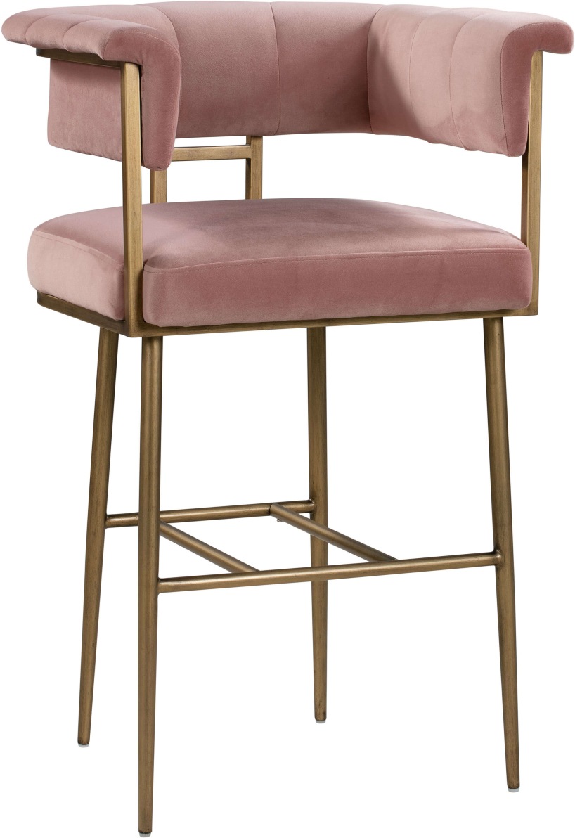 Perfect for an elegant entertaining ensemble or a casual weeknight meal, the Astrid collection is sure to elevate your dining or kitchen space. Boasting rich upholstery, rolled arms and an exposed frame finished in antique brass. Available as a dining chair or stool in both bar and counter heights.