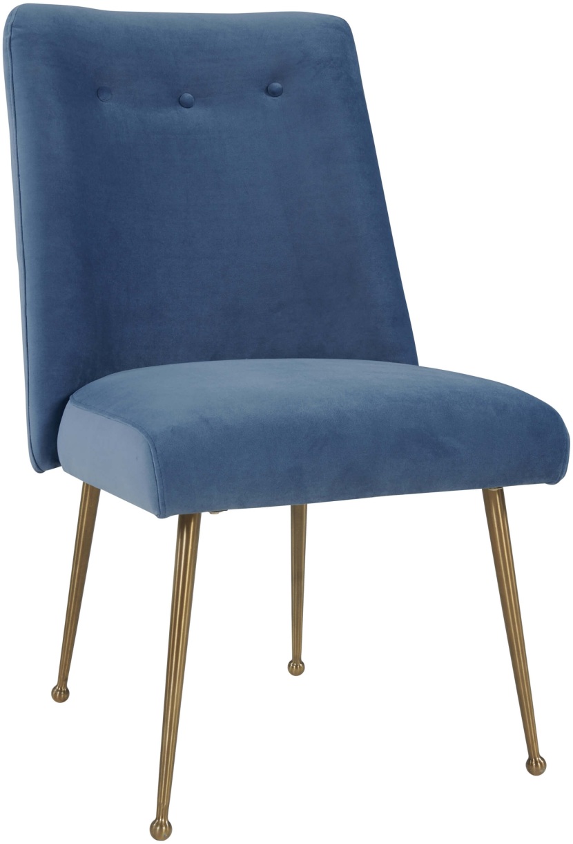 Dine in fashion and comfort with this sumptuous yet durable dining chair. With its luxe upholstery, cushioned seat and back, and its brushed gold legs complete with floor glides, the Batik dazzles as a dining or accent chair. Available in multiple color and fabric options, this chair is sure enhance any setting.Read More