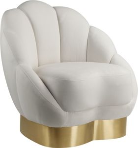 Modern Glam is epitomized in the soft curves and bold design of the Bloom chair by TOV. Boasting posh velvet upholstery, a curved gold base and channel tufting, this chair is sure to dazzle. Available in several soft color options.