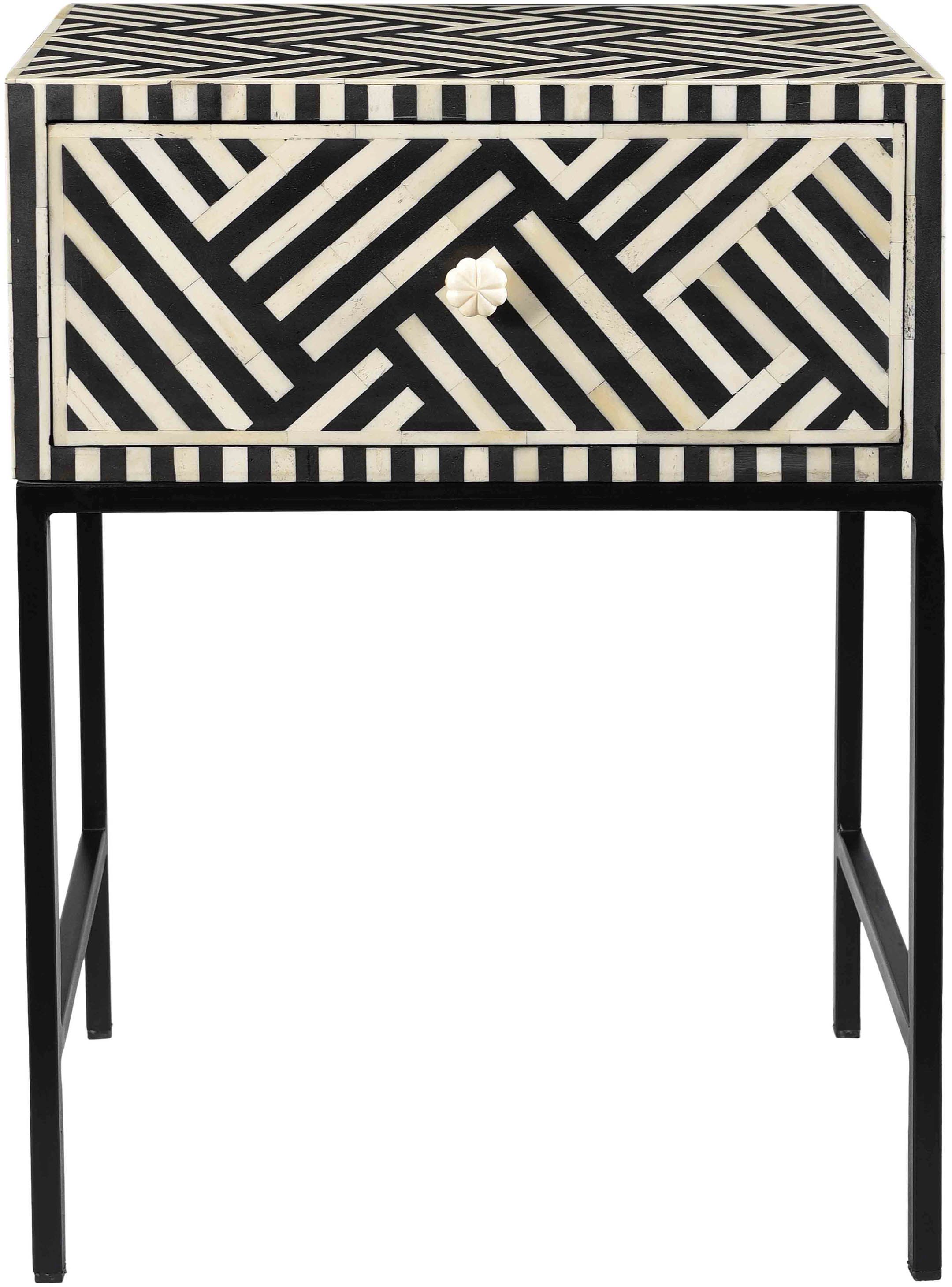 Handcrafted bone-inlay mosaics give this otherwise simple occasional table an undeniable sense of luxury. Available in two color options to fit your decor needs.