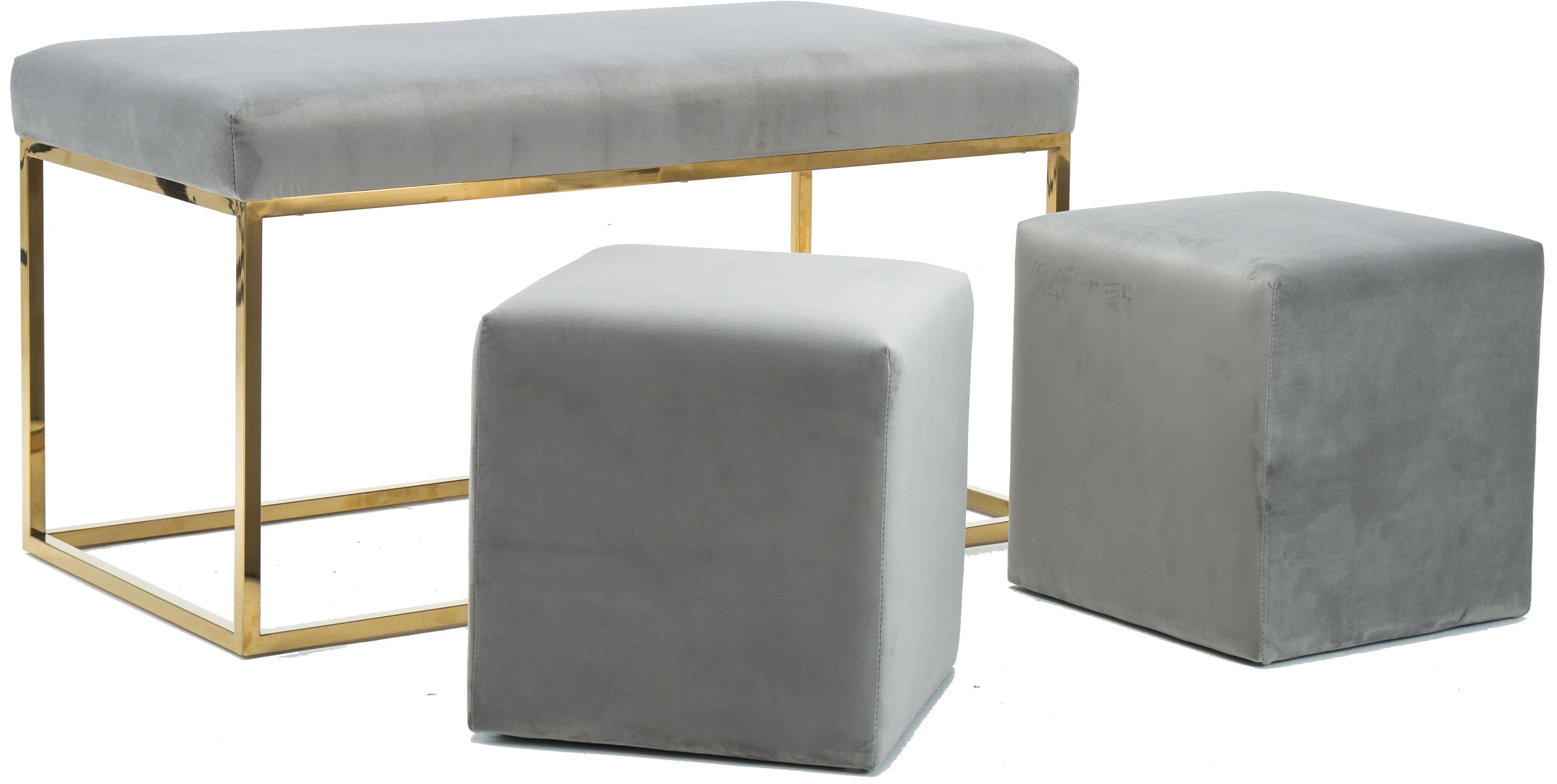Add a touch of glam with the super functional and ultra-chic bench set from Inspire Me Home Decor and TOV. The bench features soft velvet upholstery perched upon a gold structural base and the matching twin ottomans can conveniently be stored under the bench when space is limited.