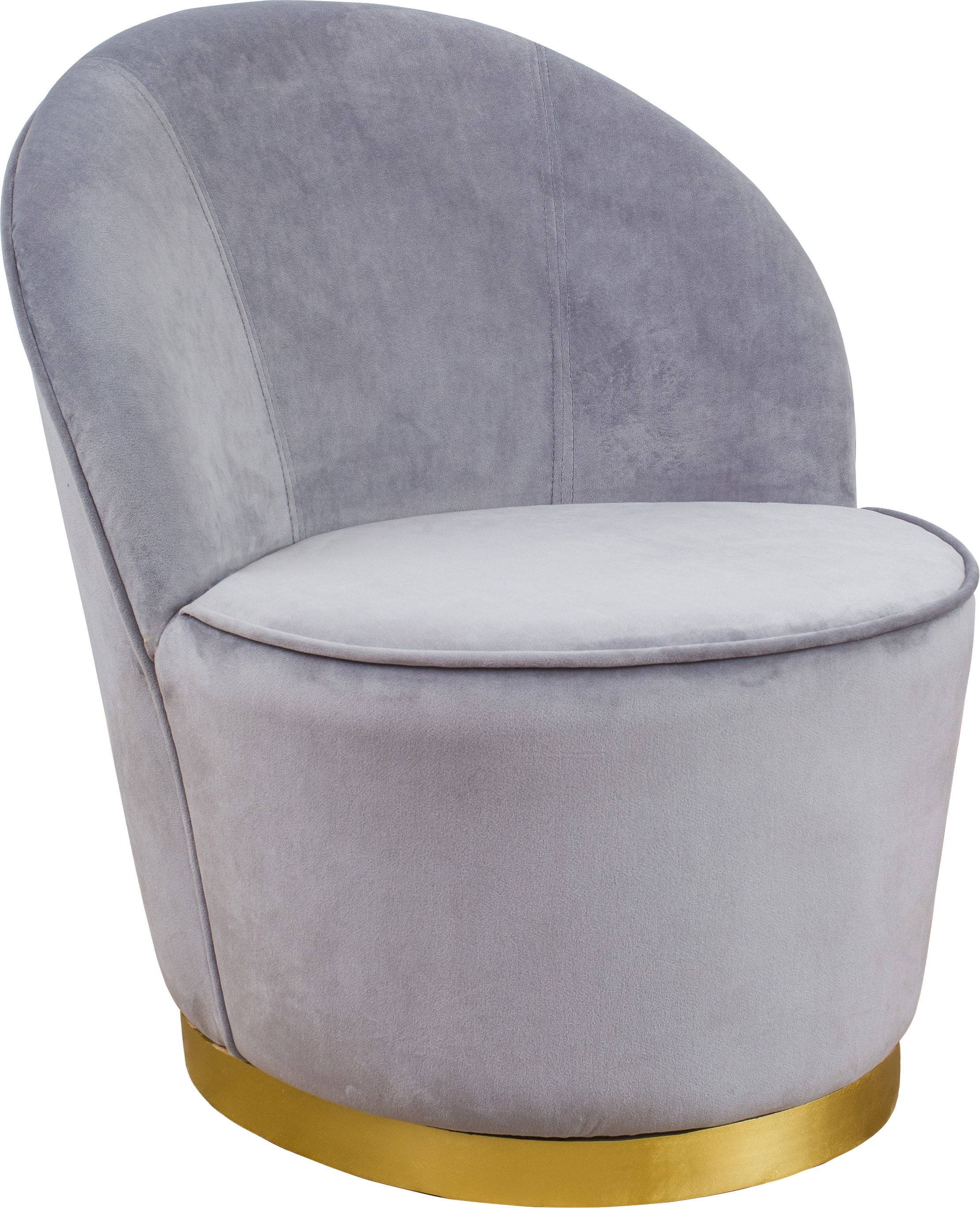 As visually enticing as it is comfortable, this graceful barrel styled chair feels modern and sleek. Lavish velvet upholstery accentuates the elegant curves and craftsmanship which sit on top of a recessed gold base. Available in multiple color options.
