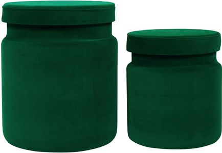 Add a burst of functional style to your space with the Kris storage ottoman set. It's playful color options, plush velvet upholstery and varied heights allow it to complement any decor.