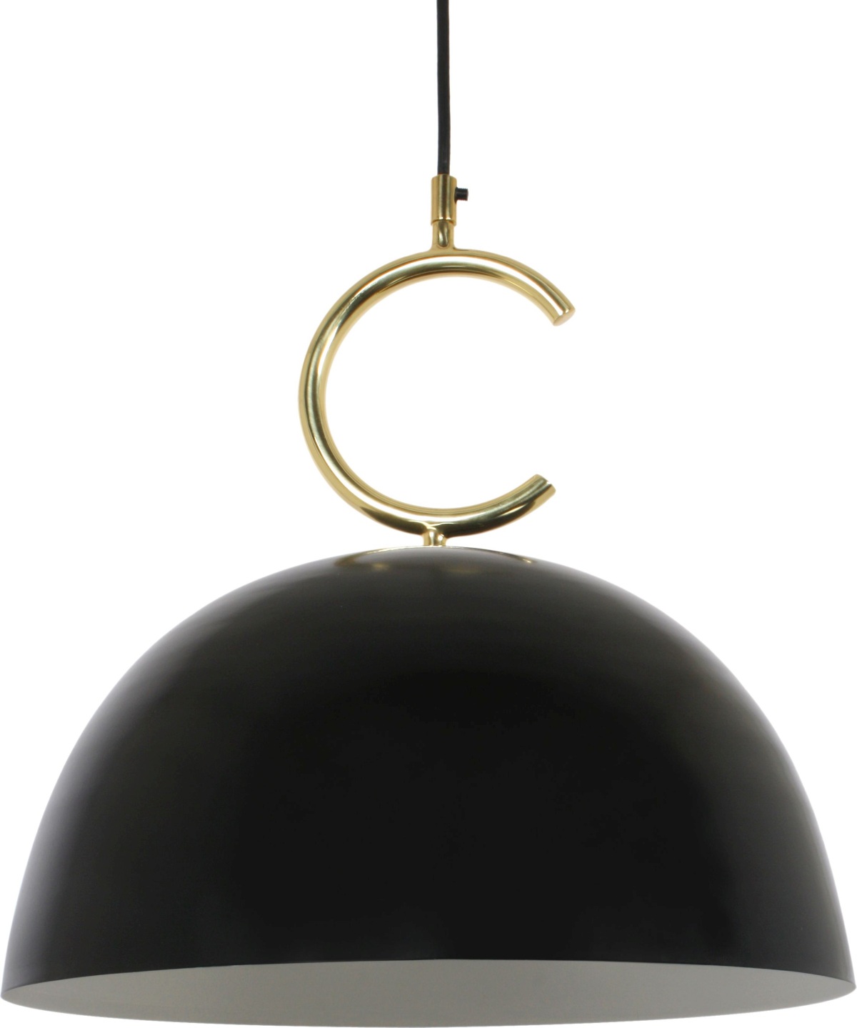 Charming on its own and even more impactful in multiples, this black and brass pendant features a classic dome silhouette supported on a brass ring. Hardwired.