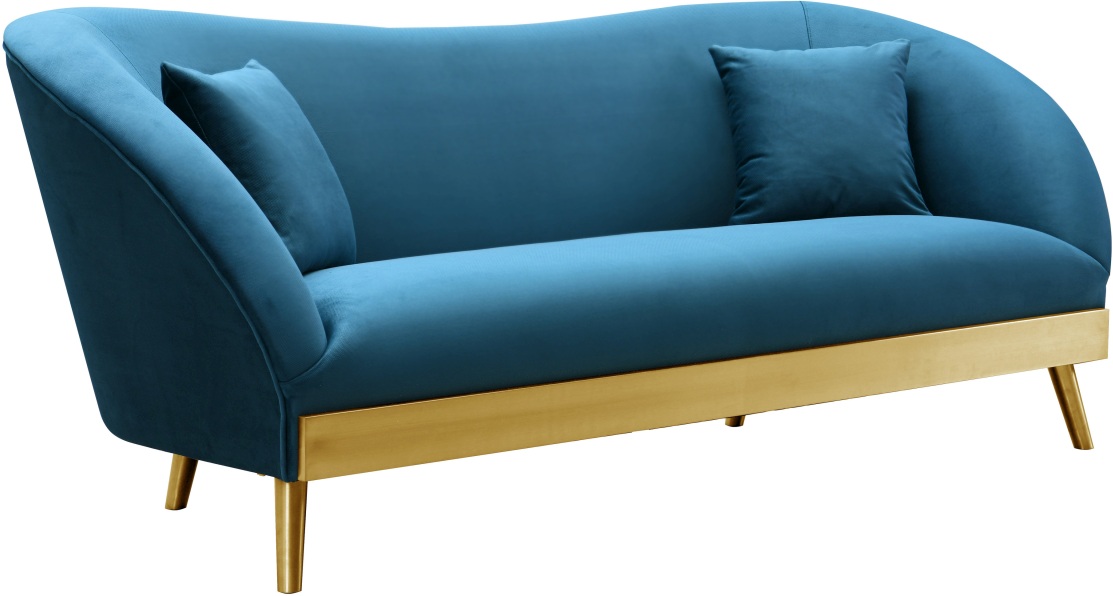 The Chloe sofa is the epitome of modern glamour. A curved silhouette with luxurious velvet on a blingy brushed gold base will be sure to dazzle and blend with any decor. We know you’ll love the versatility of this sofa, and its inviting coziness. Prop it against a bold wall color for a pop that speaks for itself. Matching pillows included. Available in multiple colors.