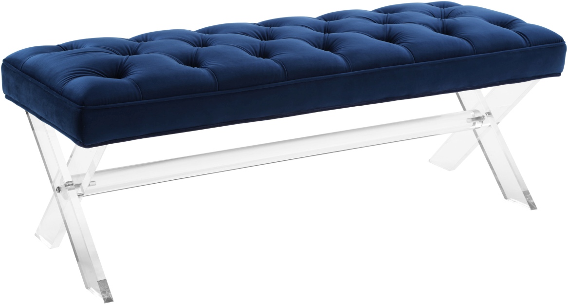 With the criss-cross of her glamorous lucite legs, our Claira bench is sure to leave a polished statement. Tapered and tufted detailing allow Claira to blend with any decor in almost any space, never going out of style.