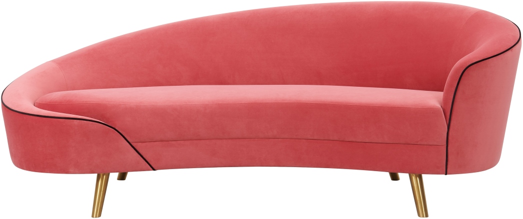 With its sloped edges and striking color, the Cleopatra sofa adds a burst of fresh style to your home. Its plush velvet upholstery, piped stitching and glamorous gold legs come together in perfect harmony to create this showstopper. Available in various deluxe color options.