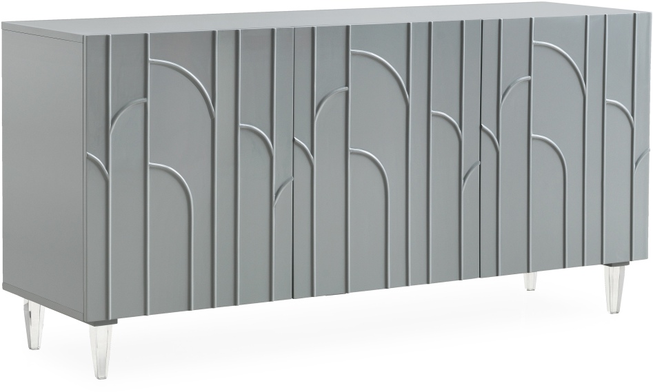 Get a showpiece and storage space all for the price of one with the Deco buffet. Inspired by Hollywood glam design, it features a lacquer finish with an artistic trim and is beautifully supported by sophisticated acrylic legs. Its press-to-open doors, adjustable shelves and abundant storage space make for a stylish and functional piece.Read More