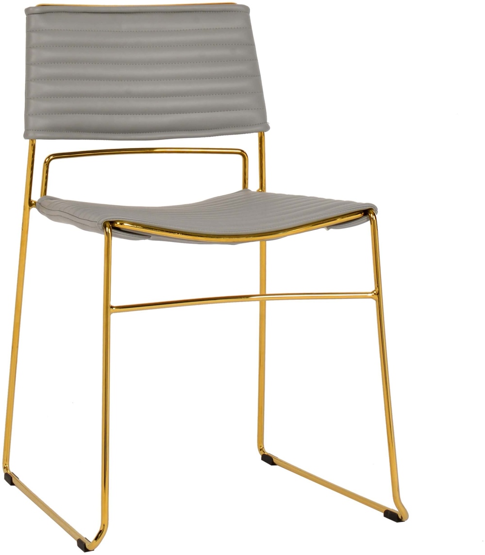 Furnish your kitchen or dining space with the attractive and contemporary Domani chair. Boasting durable upholstery available in several soft colors and a polished gold stackable frame, it offers style and utility in one beautiful package.