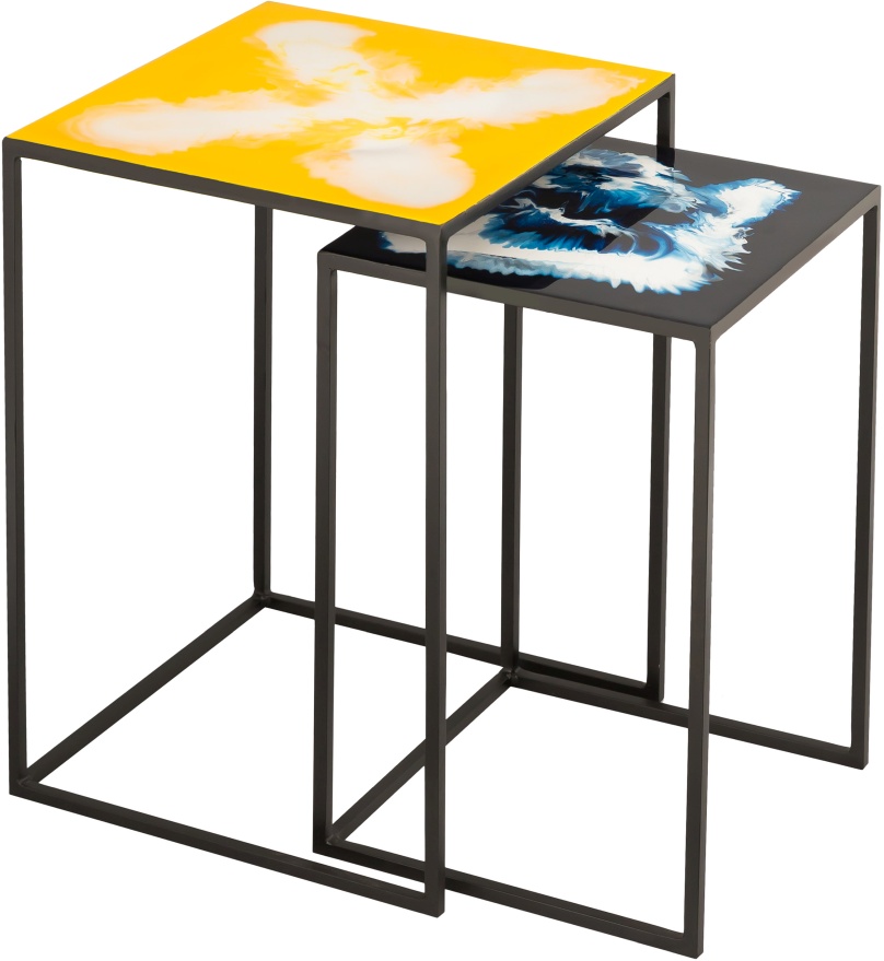Some things are just too good to only have one, so we’ve made this table set for you! Crafted from iron nd topped with a unique enamel finish, no two sets are exactly alike. Easily nestable to save space when necessary.