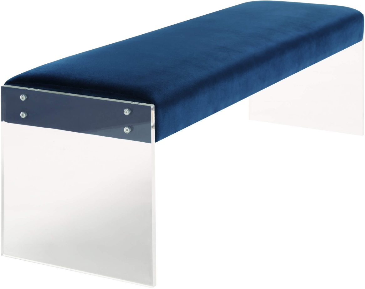 The Envy velvet bench exudes modern design and appeal. The clear Acrylic legs offer a dramatic look to the simple shape, while the plush seat is upholstered in a soft velvet. This is a must have if you are looking to add eye catching style to any space.
