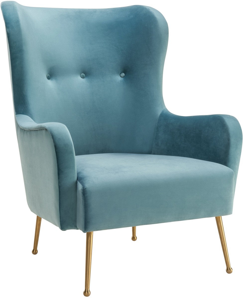 Taking the classic wing chair to a whole new level, TÅV Furniture introduces Ethan. We’ve given this chair a modern twist with its broad back, glamorous velvet upholstery, and fabulous gold legs. The elegantly curved silhouette provides maximum comfort while the wood frame provides strong support. Available in multiple color options.