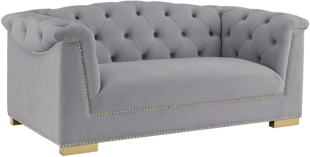 Offering a fresh and modern spin to a classic style, Inspire Me Home Decor and TOV proudly introduce the Farah loveseat. With its luscious velvet upholstery, unique tufted design on its rolled arms and hand-applied gold nailhead trim, it will be the focal point of your living space. Available in several neutral color options to meet your home styling needs.Read More
