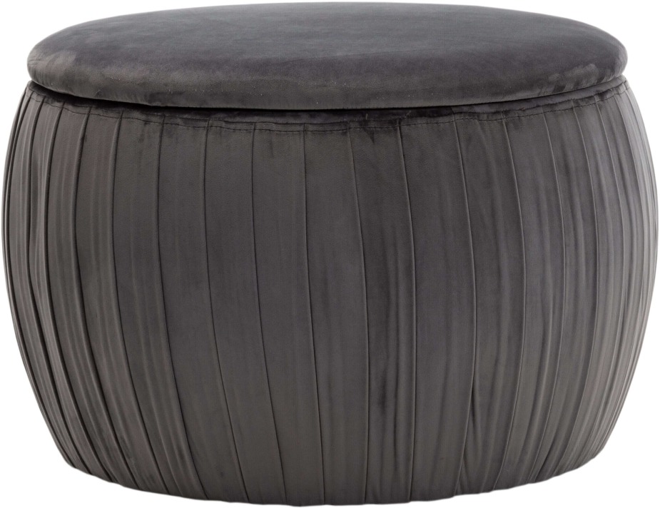 Style; Check. Comfort; Check. You want storage too? Well, the Fleur ottoman offers it all. Upholstered in sumptuous, pleated velvet, its multiple color options make it the perfect accent piece to complement any room. Can be used for storage, as a footstool or just as an extra seat.