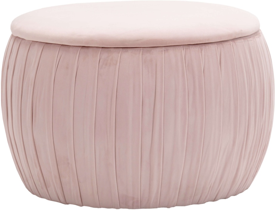 Style; Check. Comfort; Check. You want storage too? Well, the Fleur ottoman offers it all. Upholstered in sumptuous, pleated velvet, its multiple color options make it the perfect accent piece to complement any room. Can be used for storage, as a footstool or just as an extra seat.