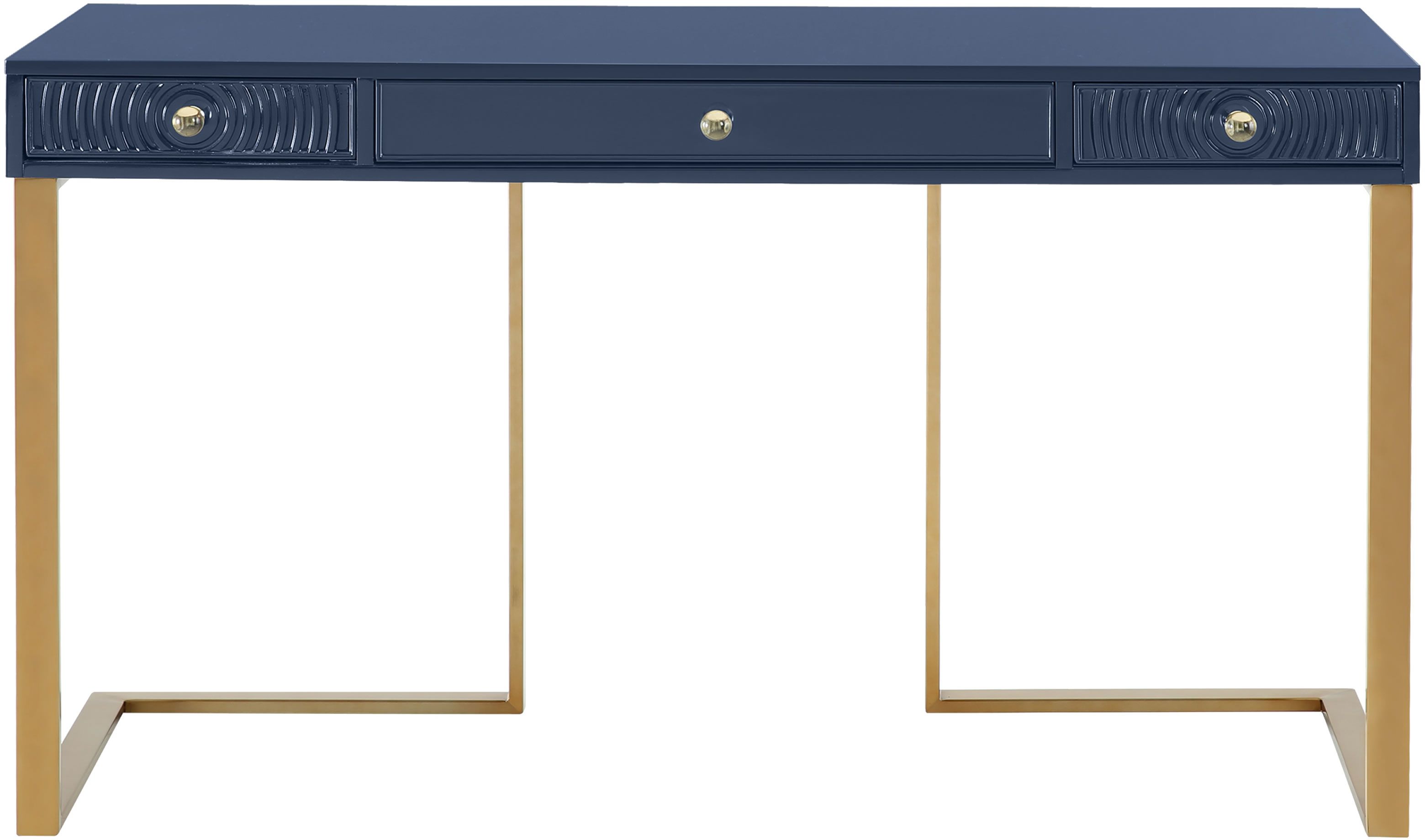 The Janie desk is fashionable for your office. With three convenient drawers, staying organized is super simple. Featuring a lacquered wooden top, clear acrylic handles and a geometric gold base your workspace will be as trendy as you are.