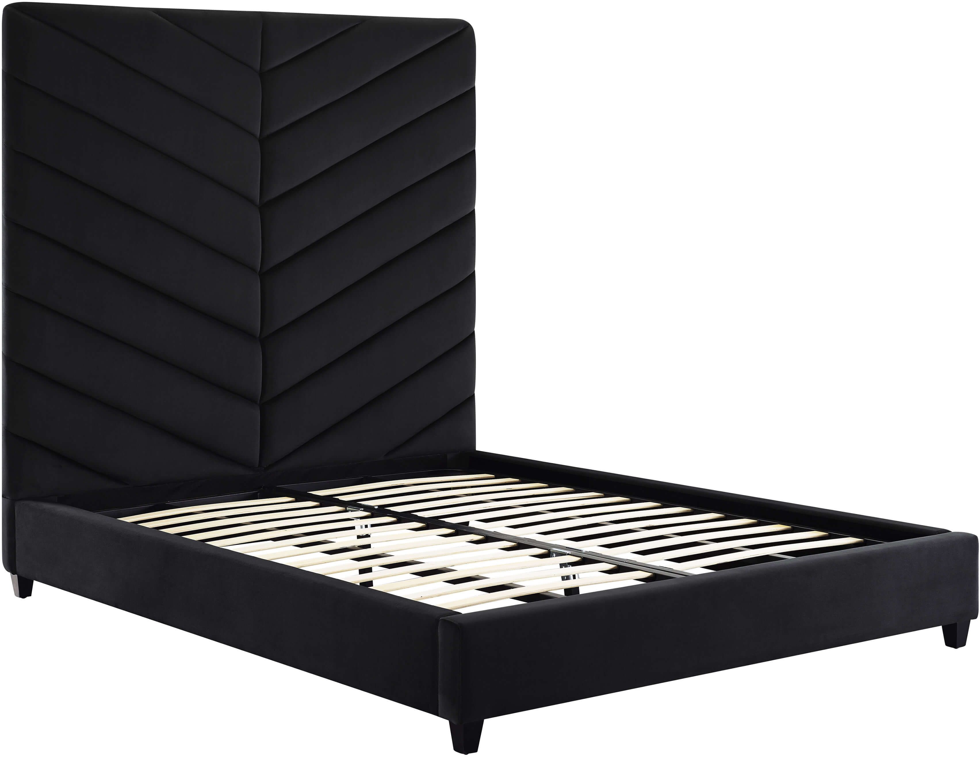 At once subtle and dramatic, the Javan bed invites you to spend the night in style. Upholstered in plush velvet with a channel-tufted design, it's available in King or Queen sizes and multiple colors. Slats are included and box spring is not required.