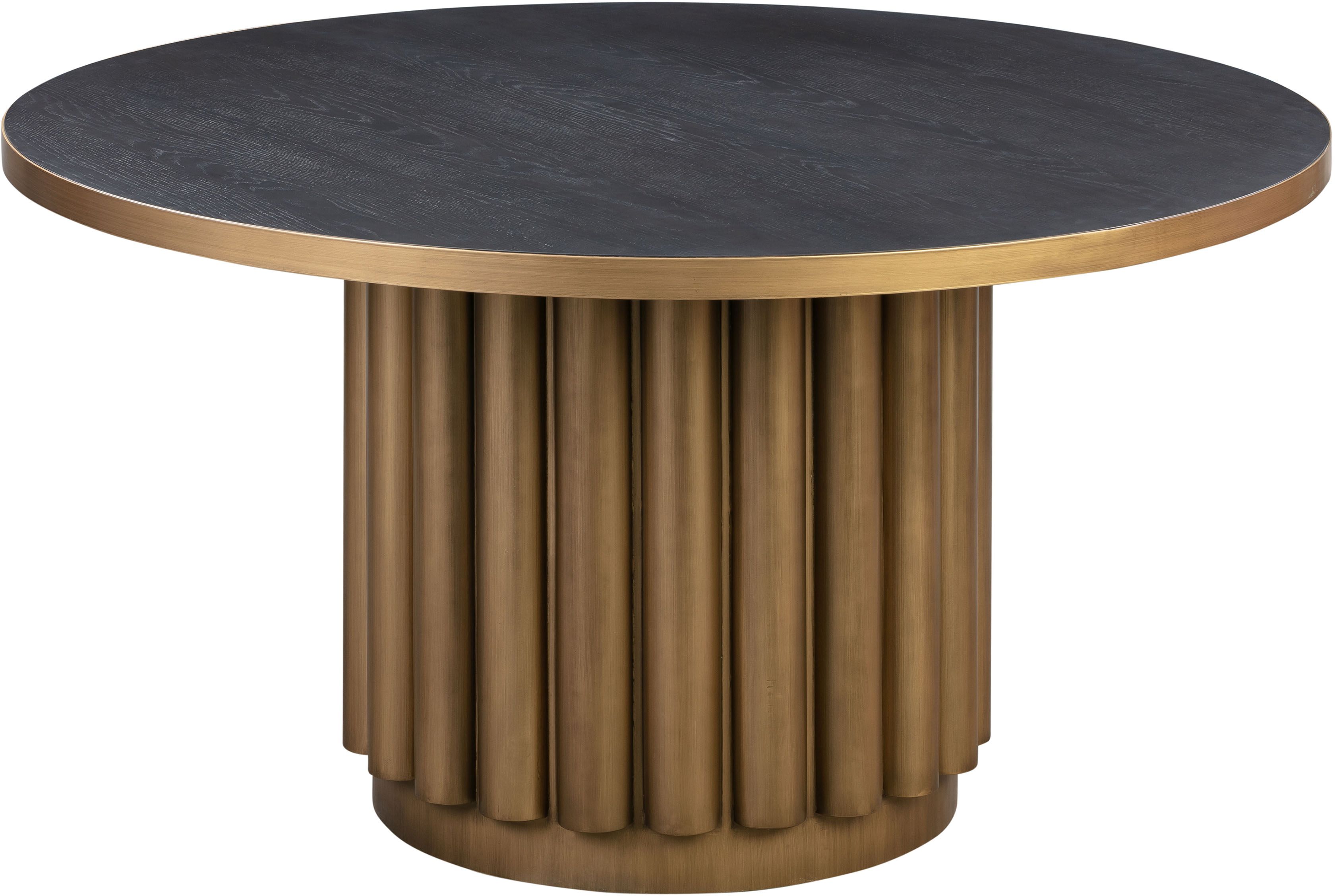 Fine dining takes on a whole new meaning with the Kali round dining table. Finished in antique brass and black, its versatile 55" diameter size makes it great for entertaining and convenient for smaller spaces.