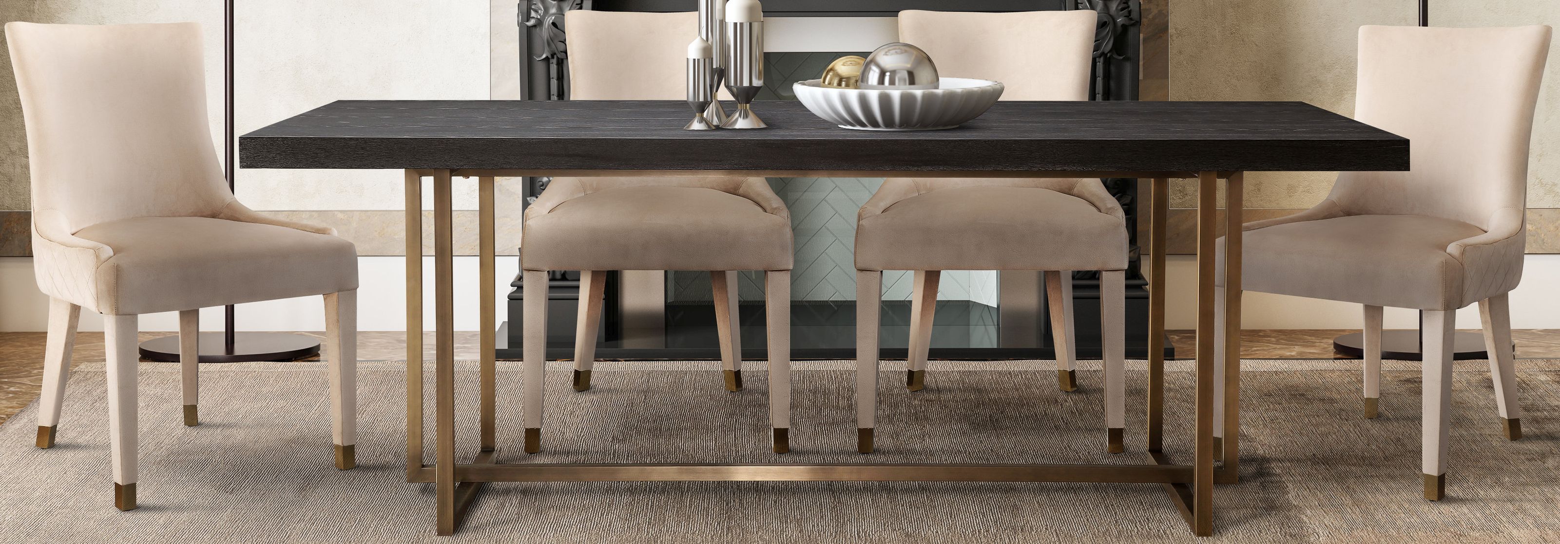Polished and dramatically modern, the Mason collection will transform your room with minimal effort. These pieces gleam with a brushed gold base and a dark chic top. Pair these pieces together or with your other fab TOV faves for that look you've been dreaming about. Featuring sumptuous velvet upholstery from the top to the gold tips of the solid birch legs. This set includes 4 diamond grey chairs and 1 Mason dining table.Read More