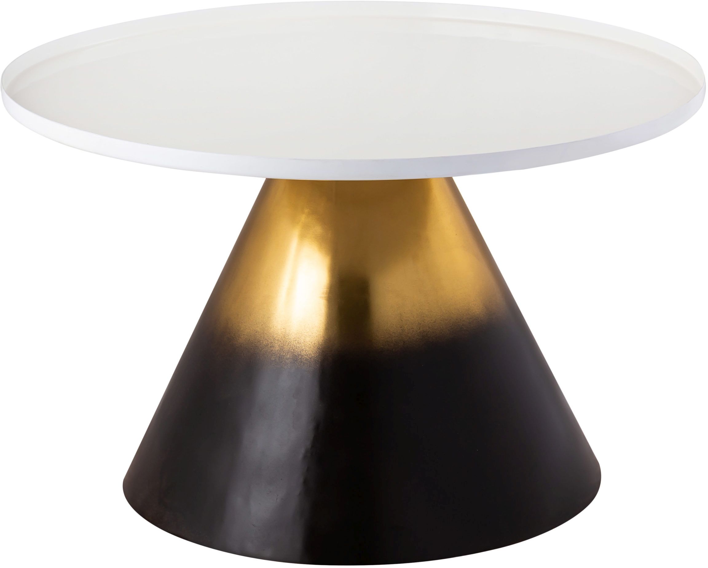 Available in both side and cocktail table sizes, its gold and black ombre base supports a solid white tray top and offers a sturdy and modern look. Use individually or as a set to upgrade most any space with fabulous style.