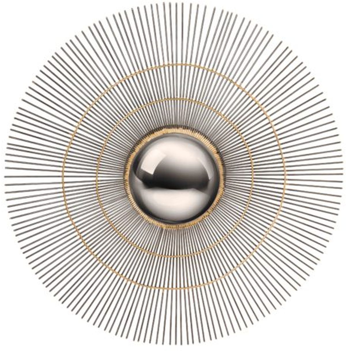 The circular Quill wall art is framed by with a sunburst design made out of antiqued gold iron spokes. The stylish combination of polished metal and gold creates an eye-catching focal point for your wall. Gorgeous and versatile, it’s a statement piece all on its own.