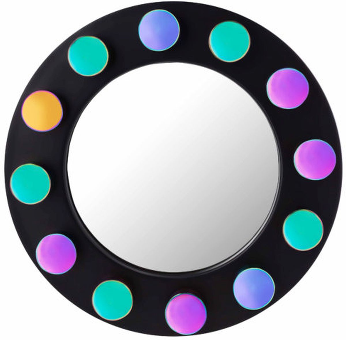 Decorating your space just became a whole lot more exciting! The Rockstar mirror boasts a matte black finish complemented by iridescently colored studs. Whether used alone or with its matching occasional tables, the Rockstar is sure to add stylish flair to your space.