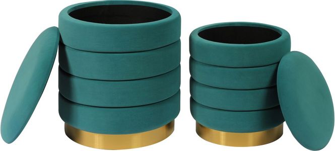 Glamorous and functional, the Saturn ottoman offers stylish design and ample storage space. Featuring channel tufting, plush velvet upholstery and a gold base, it'll add a burst of fresh color to your space. Set includes two ottomans and is available in two colors.Read More