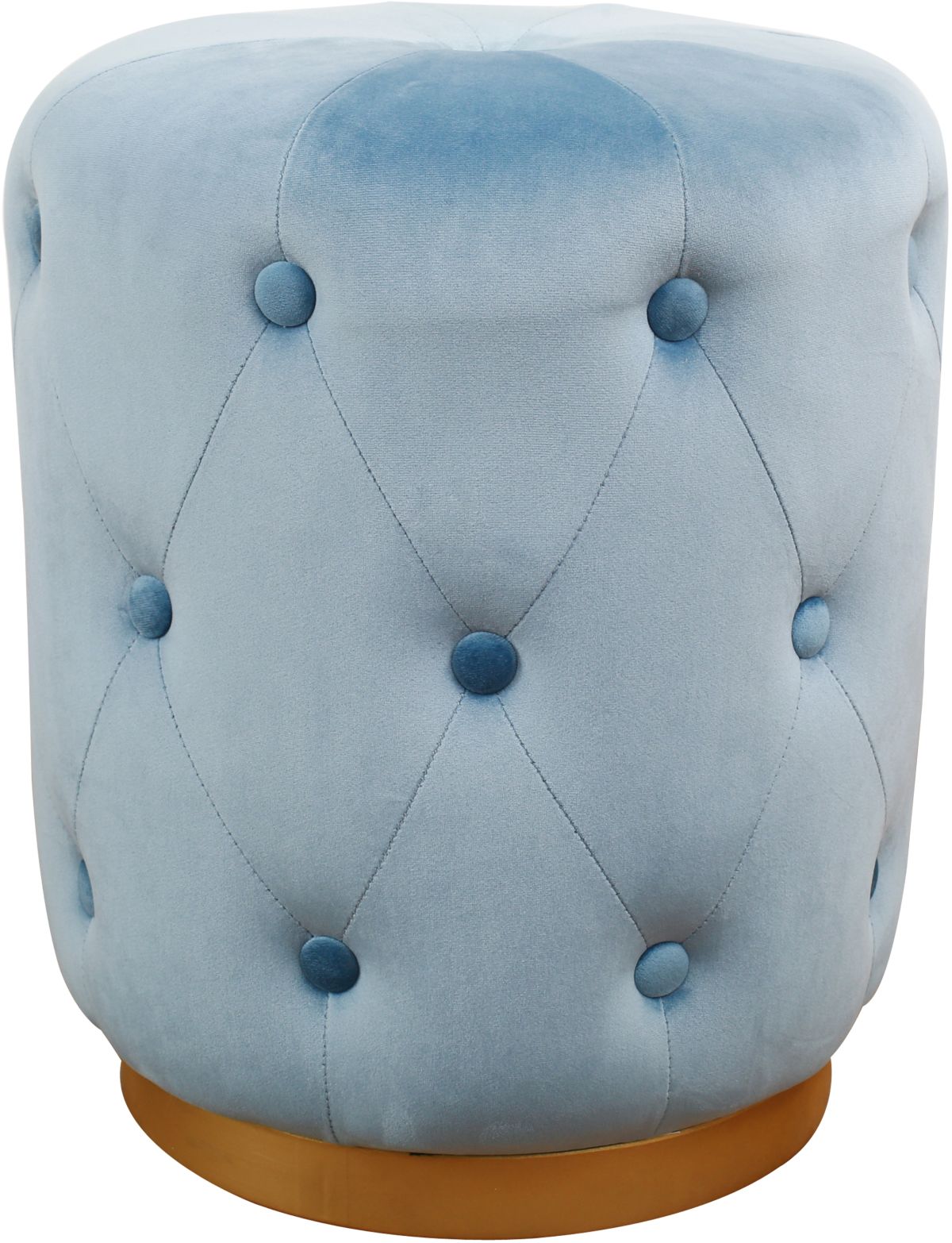 Muted hues and luxurious velvets define the Skylar ottoman. Adorned with button tufting and a recessed gold base it gives tribute to Hollywood glam style. Perfectly plush as a foot stool or extra seat, this ottoman is sure to please. Available in multiple color options.