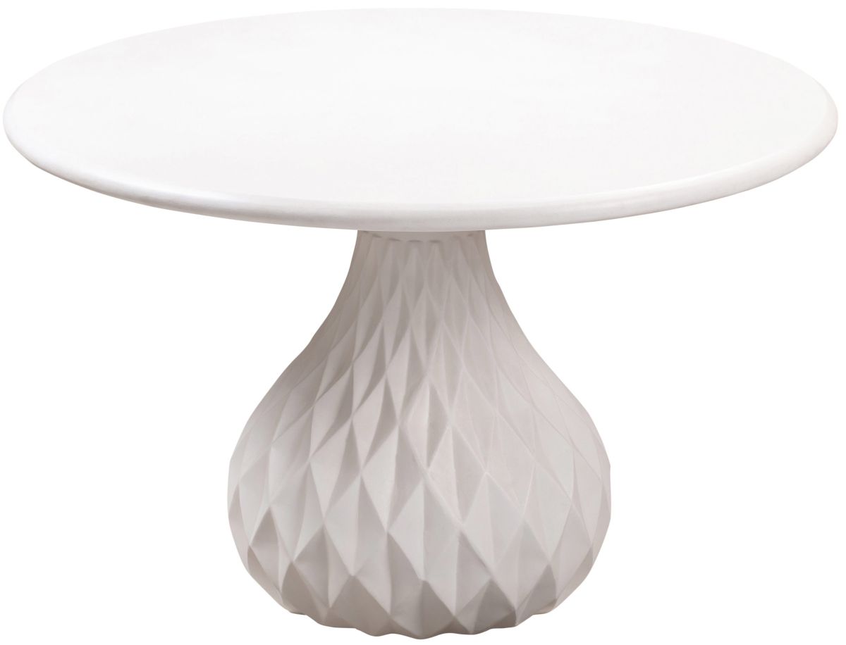 Stunning indoors or outdoors, the Tulum table brings glam style to your dining experience. Masterfully crafted from concrete, this round dining table measures 47 inches in diameter and boasts a gorgeous diamond-pattern design on its pear-shaped pedestal base.