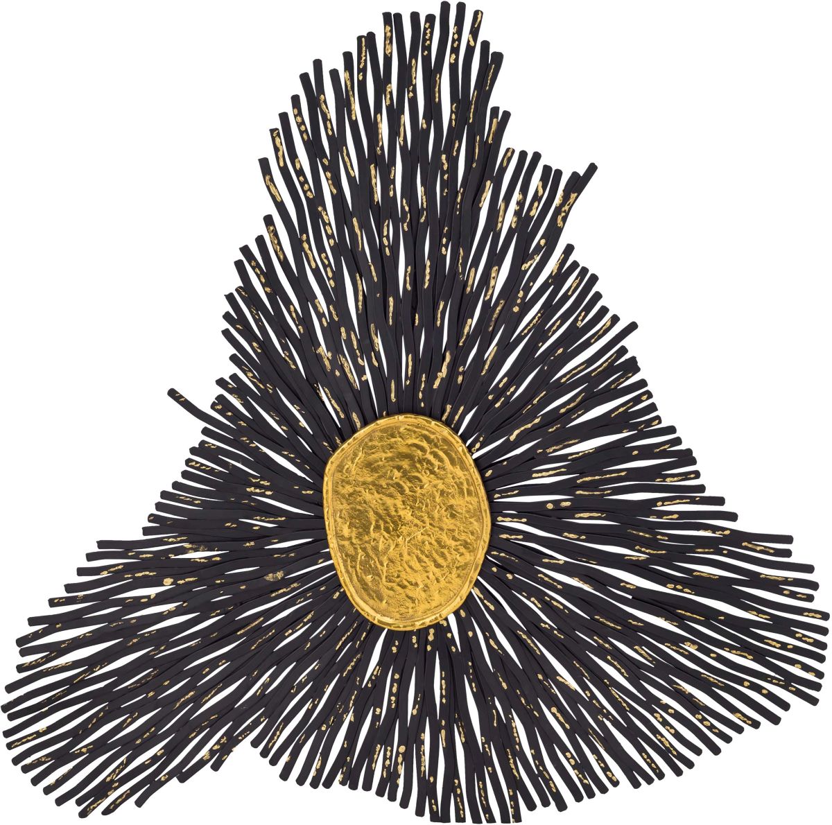 Handcrafted from iron and aluminum and finished in antique gold and black, this freeform wall art will add elements of texture and style to whichever space its placed.