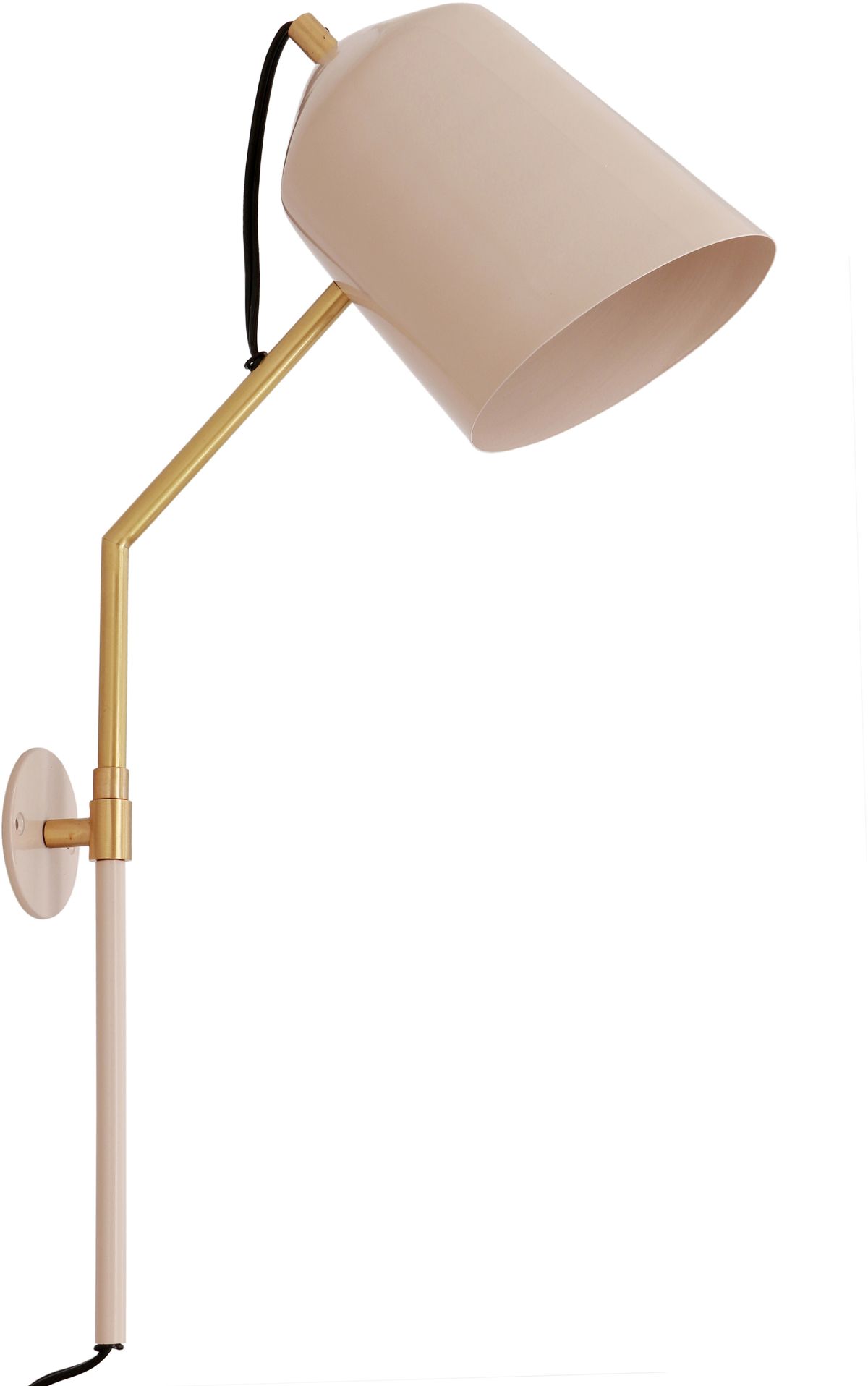 Beautifully trendy, the Zaphire wall sconce offers a modern enhancement for any space. Its blush conical shade and wall plate are offset by its angular brass neck.