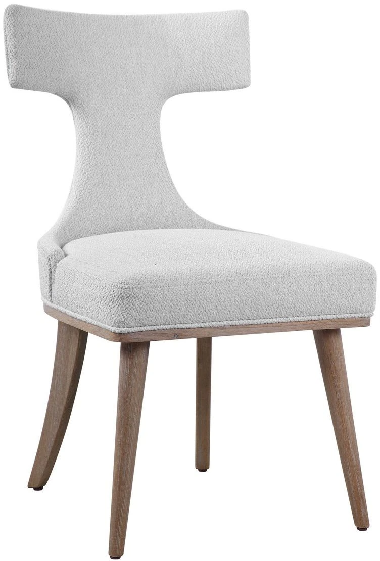 A modern take on the classic klismos design, this accent chair is reminiscent of mid-century style with textured off-white fabric and naturally finished oak legs. Seat height is 20". Packed 2 per box but priced individually. Must be purchased in increments of 2.Read More