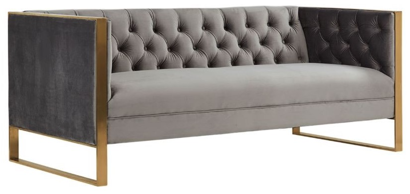 Upholstered in grey velvet fabric