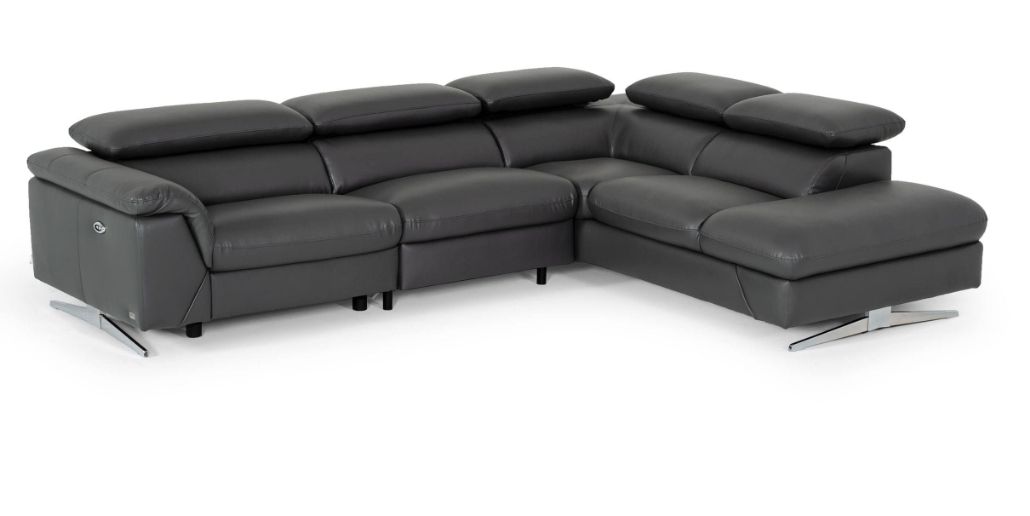 Do you want a stylish recliner as part of your modern sectional? Well, look no further than the Maine Sectional Sofa with its comfortable and durable dark grey Eco-Leather upholstery. The left-arm facing electric recliner and individually adjustable headrests are nicely incorporated in this modern design.Read More