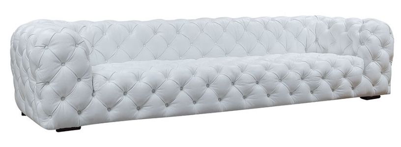 A massive showcase of luxurious comfort, the Divani Casa Baxter transitional white full italian leather sofa gives you a taste of elegant seating. Featuring an elongated boxy design style, it is upholstered in dainty white full italian leather adorned with buttons on diamond tufts.Read More