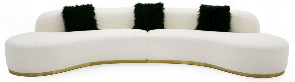 The Frontier Sectional is a stylish modern piece, perfect for a glam or contemporary home. make your home feel like an art gallery with this striking rounded sectional. The off-white textured upholstery meets with the gold platform leg to create an enchanting contrast. An example of fine contemporary styles.Read More