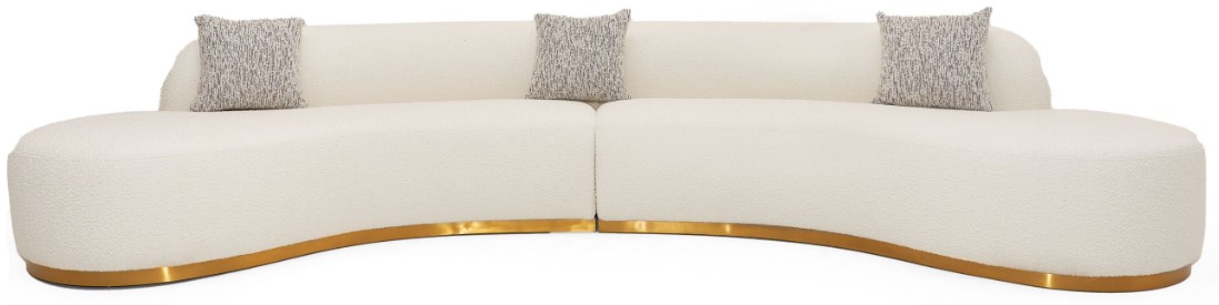 The Divani Casa Frontier Curved Sectional Sofa is the epitome of glamor and elegance. The design is reminiscent of the Art Deco movement while still remaining unique and modern. The Frontier sports a glam white fabric, a brushed gold stainless steel base and taupe throw pillows to complete the aesthetic.Read More