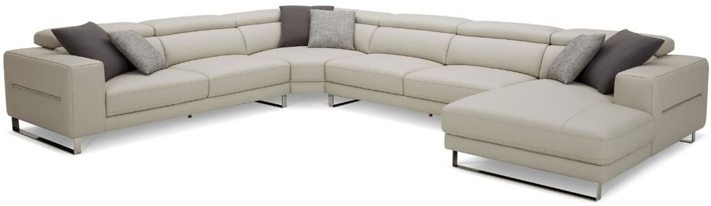 A sleek sectional sofa, elegantly upholstered in a soft and inviting light gray leather. This versatile piece combines style and comfort, making it the perfect addition to any contemporary living space.Read More