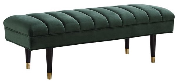 Offering you a comfortable extra sitting is the Divani Casa Ritner modern green velvet bench. Functional in any room space, this bench in green velvet fabric upholstery exudes freshness and harmony. Accommodating three average-sized persons, it features a thick cushioned seat with ridges.Read More