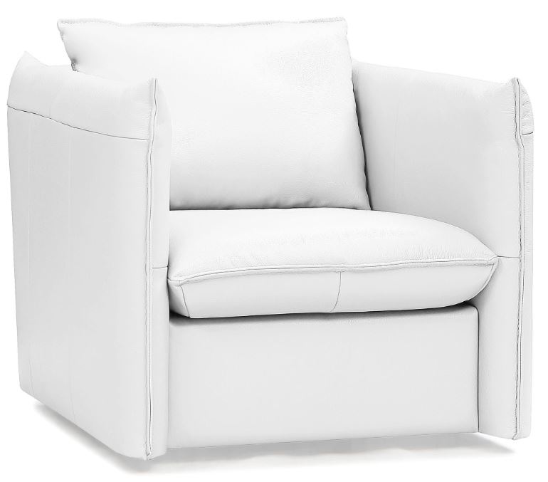 The Tamworth lounge chair is a stylish accent chair, perfect for your modern home. The white Italian leather upholstery is luxurious and soft; it envelopes the rectilinear frame and creates raised seams to give a contemporary feeling. The swivel base overs functionality and a fun experience.Read More