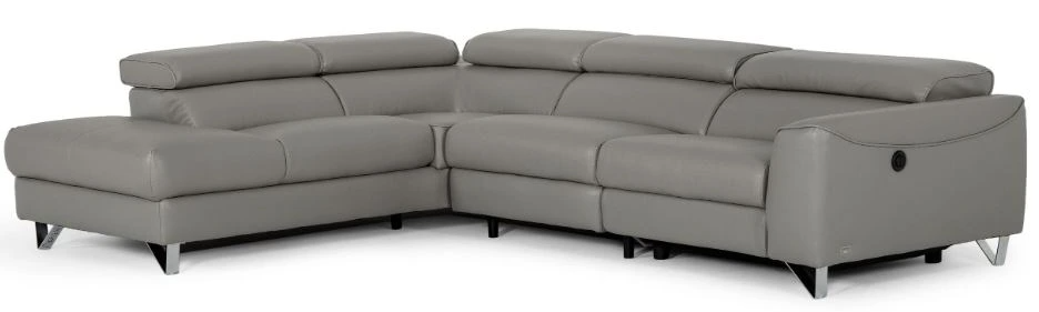 The Versa sectional is the right amount of elegance and comfort. With a right-facing recliner, left-facing chaise, and adjustable headrests this upholstered grey eco leather sectional is perfect for the whole family to relax in style. The rounded armrests are a nice touch as well.Read More